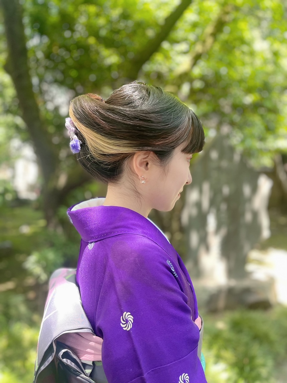 着付けとヘアセットは長く協会にいて、伊勢丹三越など主に百貨店などの着付け部門を担当してきた宮田成美に任せ、スタイリングは二人で色々と考えながらやっています。